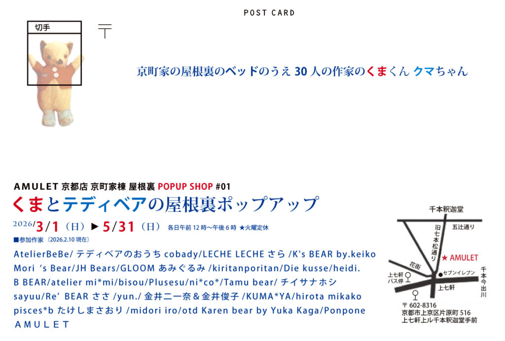 3/1〜5/31 AMULET京都店〝くまとテディベアの屋根裏ポップアップ〟開催