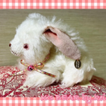 説明:手の平サイズの可愛いコ。真っ白ふわふわモヘアにピンクベージュのお耳としっぽがCuteです。